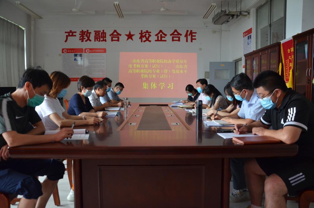 7月9日下午,为进一步更新办学理念,明确工作思路,公司组织副科级以上干部召开研讨会,集中学习《山东省高等职业院校办学质量年度考核方案(试行)》和《山东省高等职业院校专业(群)发展水平考核方案(试行)》两个文件,并结合部门实际情况进行研讨。