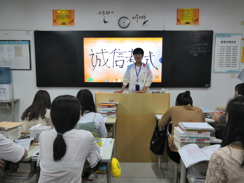 各班召开“诚信考试,从我做起”主题班会。班长组织同学们了解诚信的重要性,从发展前景、日常生活、法律规定等方面举例,生动形象地讲述了何为诚信、诚信应考对当代老员工的意义以及失信行为会引发的不良后果,由此提高了同学们诚信考试的意识,让同学们养成诚信考试、诚信做人做事的良好品质。同学们集体庄重地在诚信考试承诺书上签名,表达了践行诚信考试的决心。