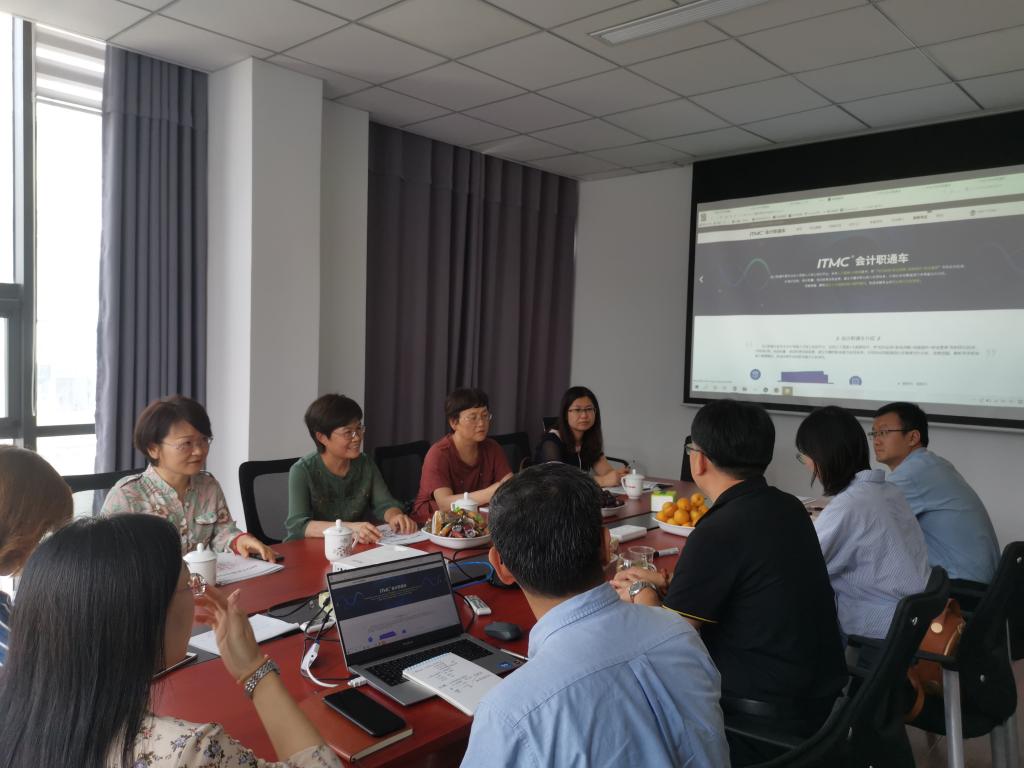 会计专业骨干教师与中教畅享科技有限公司相关专家,从三教改革的理念出发,由云题库、云实训库和云经验库构成的会计直通车囊括了员工日常学习、测验和考试、仿真单项和综合实训等教学的各个环节,真正实现做中学和理实一体化,将职业岗位与专业课程对标,实现课程学分化、学分证书化。双方就会计专业的转型发展、会计人才的培养模式,结合1+X证书的培训考试现状等进行了深入探讨,并就下一步会计核心课程校企共同实施“理实一体化模块化”教学试点具体措施的落地交换了意见,取得了实质性的成果。(马骁驰 吴洋晖供稿)
