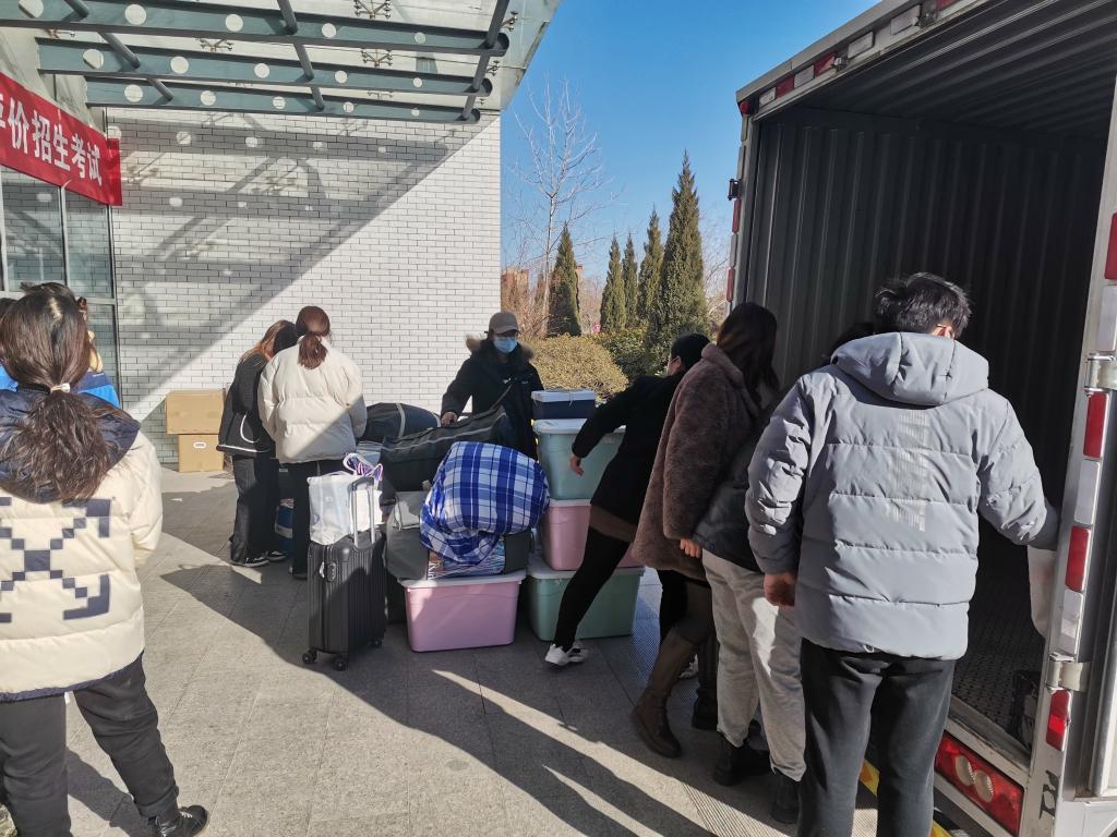 师生同心合力,搬迁工作井然有序。2月26日早上8点,公司领导班子、辅导员、班主任及员工志愿者等人员按时到位,严格遵守疫情防控及校园管理相关规定,做好个人防护措施,为员工宿舍搬迁顺利完成做足准备。搬迁过程中,所有参与人员按照搬迁方案积极组织并全程跟进,始终将人身安全和财产安全放在第一位,分工明确,坚守岗位,做到各个环节交接顺畅,不留盲点,确保了搬迁工作有条不紊、有序进行。