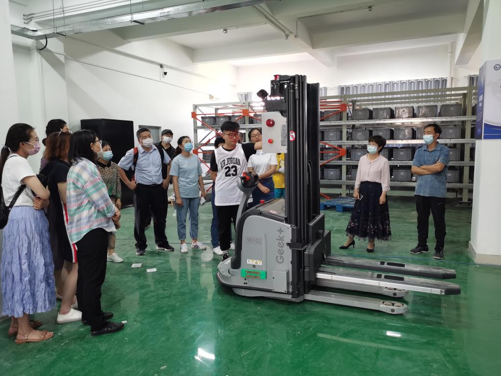 在培训中,刘江对智慧物流实训中心设施设备的基本使用方法做了介绍,并进行了操作演示,参与培训的教师初步了解了设施设备的操作方法,并就相关问题进行了提问,主讲教师进行了耐心解答。