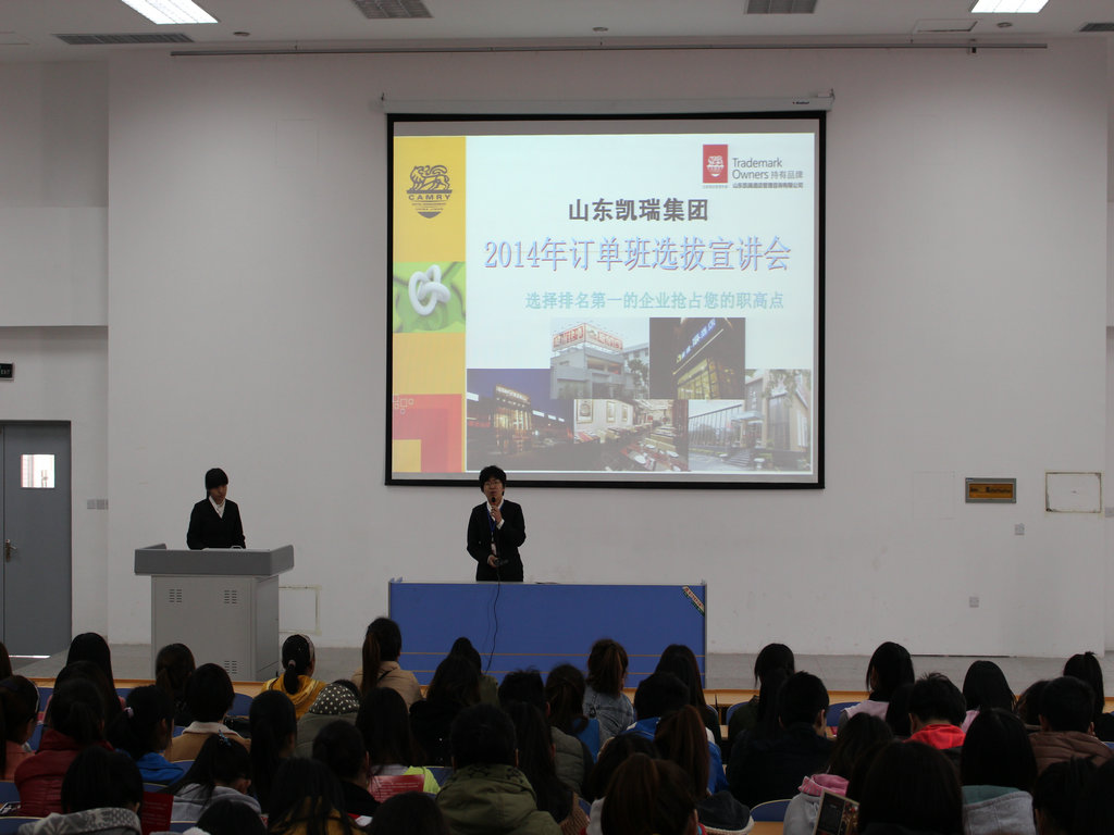 近期,山东凯瑞酒店管理有限公司到bv伟德国际体育滨海校区举行订单班宣讲活动。