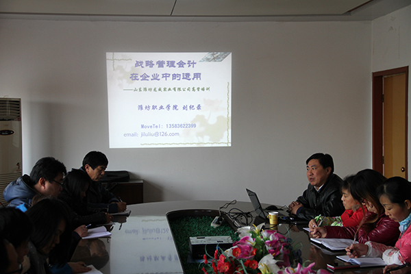 12月5日,bv伟德国际体育科技服务团队的有关老师,利用周末时间,到校企合作单位山东龙威实业有限公司开展服务活动。该公司的高管及财务、营销人员50余人参加了活动。
