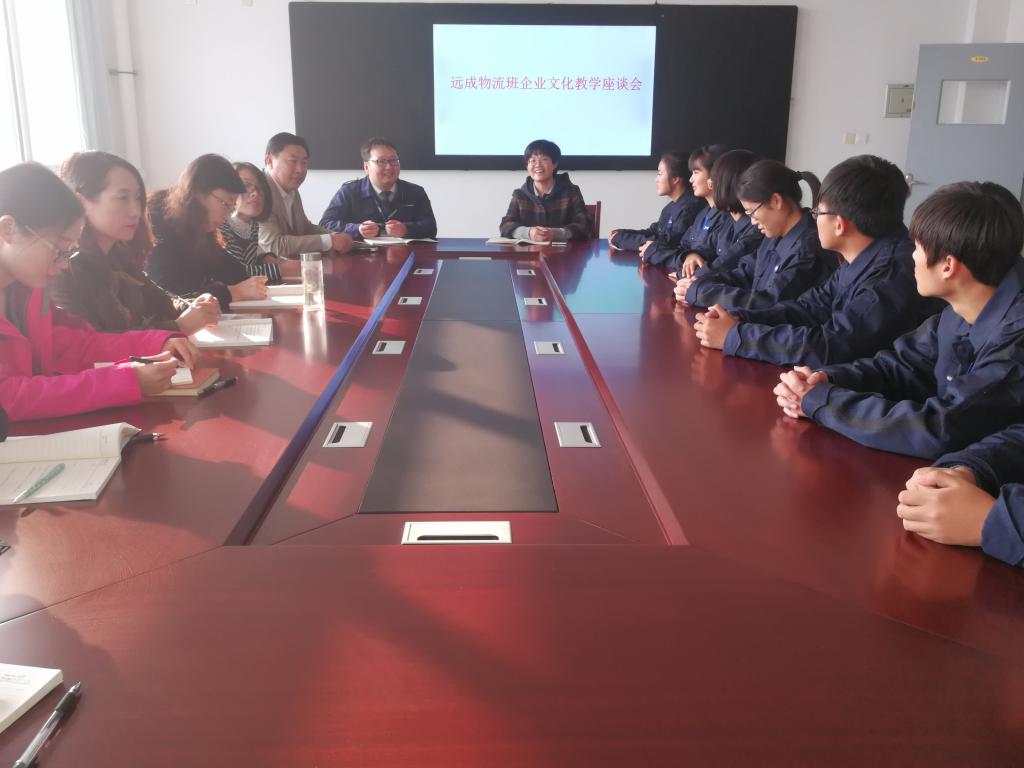 贺小波还与部分物流管理专业的师生进行了座谈交流,就远成物流班开设课程的教学方法、企业项目引入等方面发表了各自的心得和感受,也对员工学情、教学安排、课堂教学、实训环境等方面提出了各自的建议和想法。