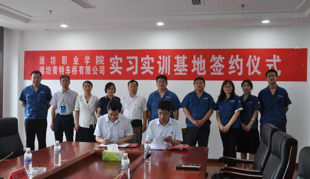 为不断提高联系服务企业工作水平,做实联系服务企业活动,促进校企业合作共赢,7月6日,公司副董事长贺志强带领监察审计处、教师工作部、科技处、汽车工程公司主要负责人,到公司联系服务企业举行校企合作签约,并为潍坊青特车桥有限公司“bv伟德国际体育实习实训基地”、诸城大舜汽车科技有限公司“bv伟德国际体育教师工作站”揭牌。