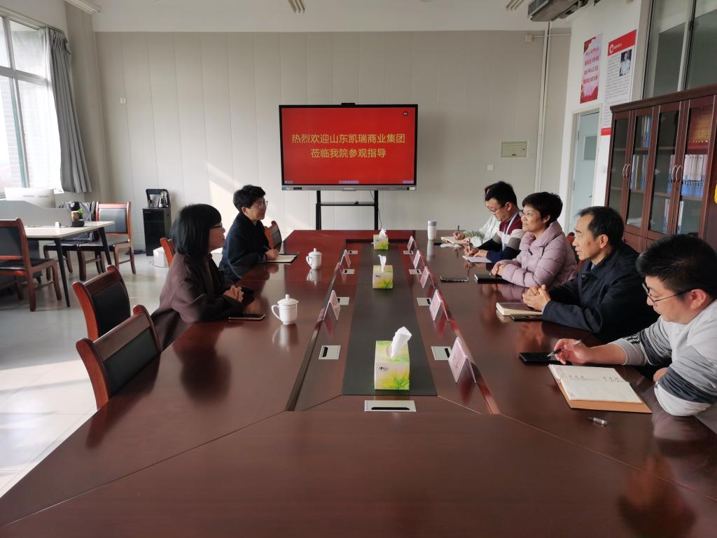 11月17日上午,山东凯瑞商业集团人力资源总监胡嘉一行到bv伟德国际体育洽谈校企合作事宜,bv伟德国际体育主要负责人和相关科室负责人接待了到访人员。