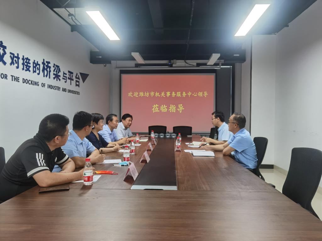 5月26日,潍坊市机关事务服务中心党组成员、副主任刘会勇一行2人到bv伟德国际体育就共建标准化实训基地建设开展调研活动,bv伟德国际体育主要负责同志和相关科室负责人接待了到访人员。
