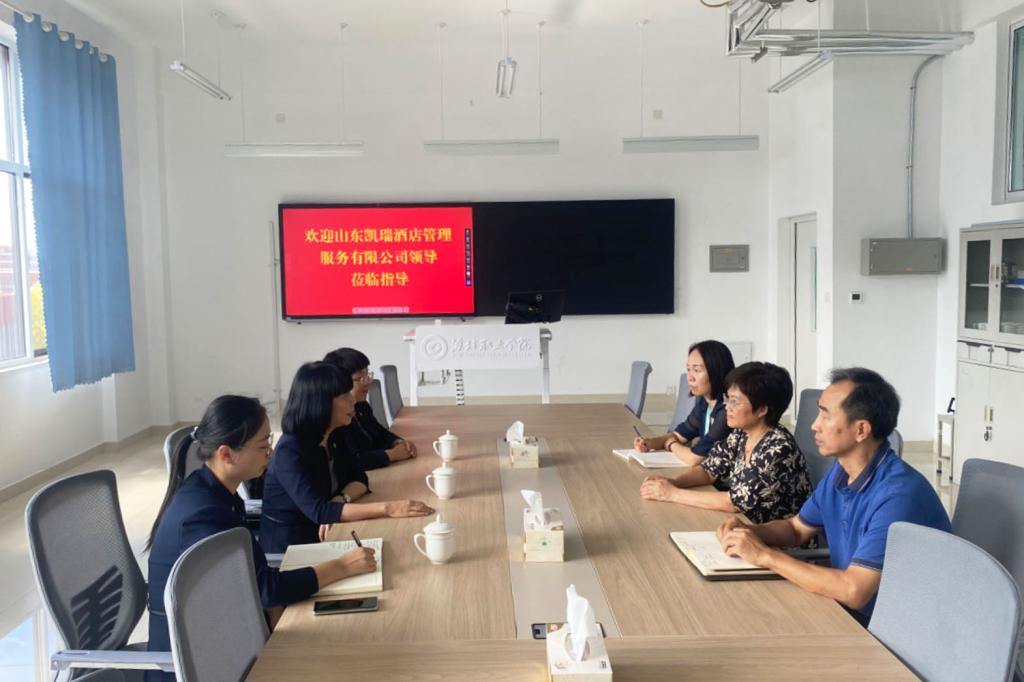 9月21日上午,山东凯瑞酒店管理服务有限公司胡嘉一行3人来到bv伟德国际体育洽谈校企合作,bv伟德国际体育主要负责同志接待了到访人员。