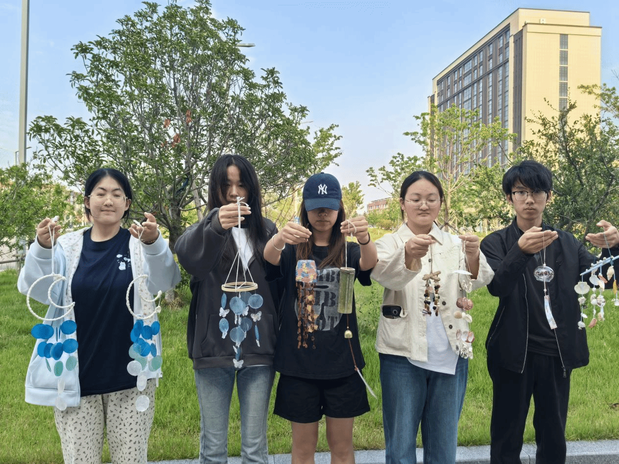 此次活动秉持环保理念,以美学追求为引领方向。活动现场,同学们充分发挥主观能动性与创造力,巧妙地将日常生活中的废弃物品转化为独具匠心的风铃作品。旧钥匙在碰撞间发出清脆悦耳的声响,仿佛在诉说着往昔的故事;彩绘贝壳在微风中轻轻摇曳,展现出灵动之美;塑料瓶被精心剪裁成花朵形状,栩栩如生。这些作品不仅充分体现了同学们强烈的环保意识,更承载着他们内心深处的情感寄托与独特感悟。风铃发出的悦耳声音,如同一股清泉,有效缓解了同学们在学业与生活中产生的焦虑情绪,让心灵得到了宁静与放松。活动结束后,种花家社区将风铃悬挂于社区的“经心话语”心理咨询室。当清风拂过,各色风铃随风应和、摇曳生姿,不同材质碰撞发出的和鸣交织成一曲令人心旷神怡的自然乐章,为校园增添了几分灵动与生机。