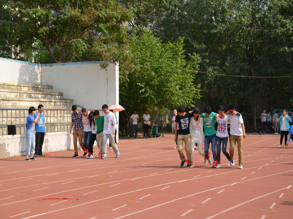 本次活动主题为“友爱、互助、和谐、快乐”,共有两项比赛:齐心协力绑腿跑接力赛和背靠背默契夹球跑。要求男女同学混合组队参加,和传统的体育竞技比赛不同,不以速度快为唯一获胜标准。所设奖项有最和谐奖、最励志奖、最默契奖、最幽默奖等。共有32个班组队参加。选手们不惧炎热,赛场上互帮互助,你追我赶,气氛热烈欢快。