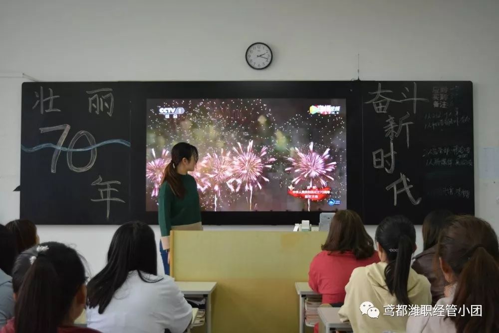 本次活动以各班团支书组织本班同学分享观看完“建国70周年阅兵仪式”视频的心得体会的形式展开。团课上同学们踊跃发言,争相讲述自己的感受感悟,各班级在团支书的带领下,纷纷表达了新时代是夺取中国特色社会主义伟大胜利的时代,是决胜全面建成小康社会、全面建设社会主义现代化强国的时代,同时发表了爱国行动计划,为祖国的壮丽七十年喝彩,为祖国的奋斗新时代接力。最后,团课在同学们高涨的爱国热情中结束。