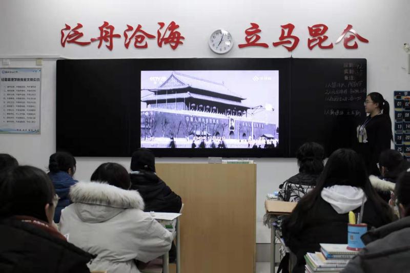 本次活动由各班团支书主持开展,引导同学们观看新中国成立七十年以来,党和政府坚持教育优先发展战略,在教育领域做出的不懈努力和探索创新。该片展示了扫盲运动、高考制度的恢复、义务教育的实施、新中国教育事业取得的辉煌成就等方面一路向教育强国迈进的辉煌历程。结合新中国七十年的教育历程,各班级就此展开深入讨论,同学们深刻认识到唯有教育变革才能推进科学技术的发展,唯有努力接受教育才能促进强国建设。