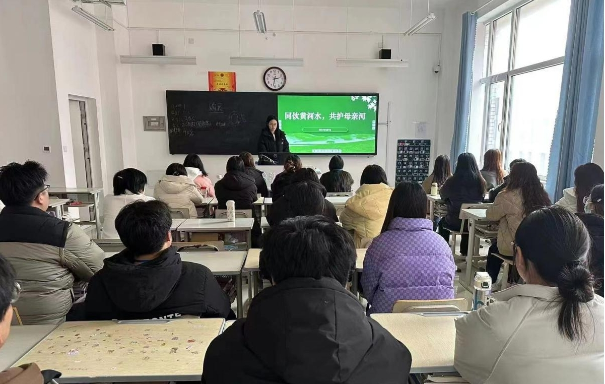 团课活动中,团支书带领同学们深入了解黄河的历史积淀、文化底蕴和生态价值,共同观赏聚焦黄河水资源环保议题的视频纪录片,在领略黄河雄浑壮美的自然风貌的同时,认识到保护黄河生态环境的重要性。随后,团支书带领大家共同探讨当前黄河面临的生态环境问题及应对措施,并鼓励号召同学们参与黄河流域生态保护和高质量发展的志愿工作中。