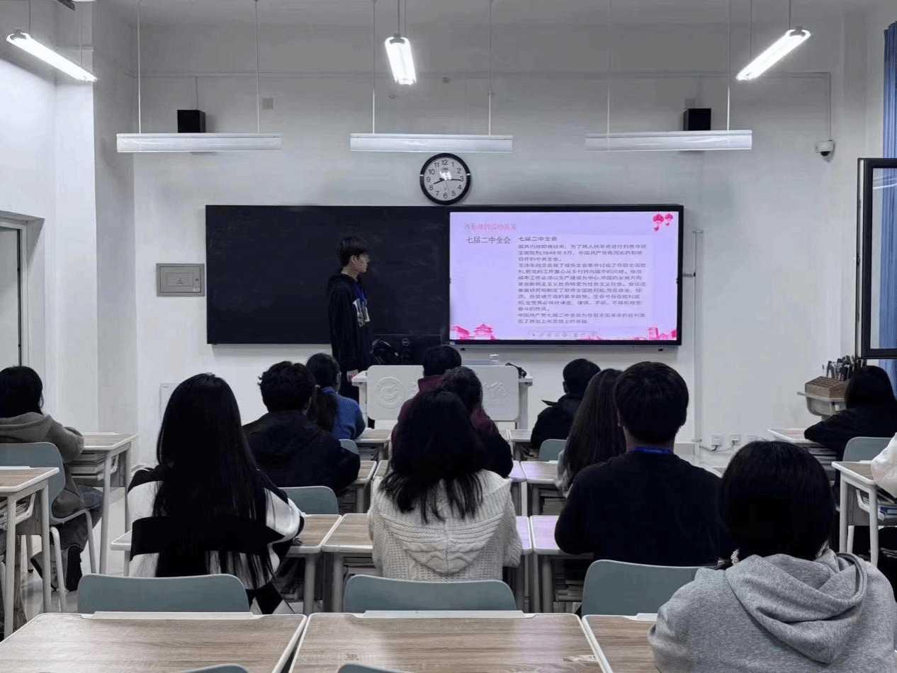 本次团课围绕“重温红色岁月,缅怀峥嵘历史”“传承红色基因,延续精神血脉”“青年学子在新时代的责任与担当”三大板块展开。活动伊始,团支书发表了激情澎湃的宣讲,引领大家沿着中国共产党的光辉足迹,共同回顾了中国革命的光辉历程和红色记忆。随后,通过展示相关素材,深刻阐述了传承红色基因、延续精神血脉的重要意义,使同学们深刻认识到赓续红色血脉的紧迫性和必要性。在此基础上,同学们共同观看了爱国影片《我和我的祖国》,影片通过讲述普通人与国家紧密相连的感人故事,进一步坚定了同学们的理想信念,激发了他们自觉担当重任的使命感,立志成为有理想、敢担当、能吃苦、肯奋斗的新时代优秀青年。