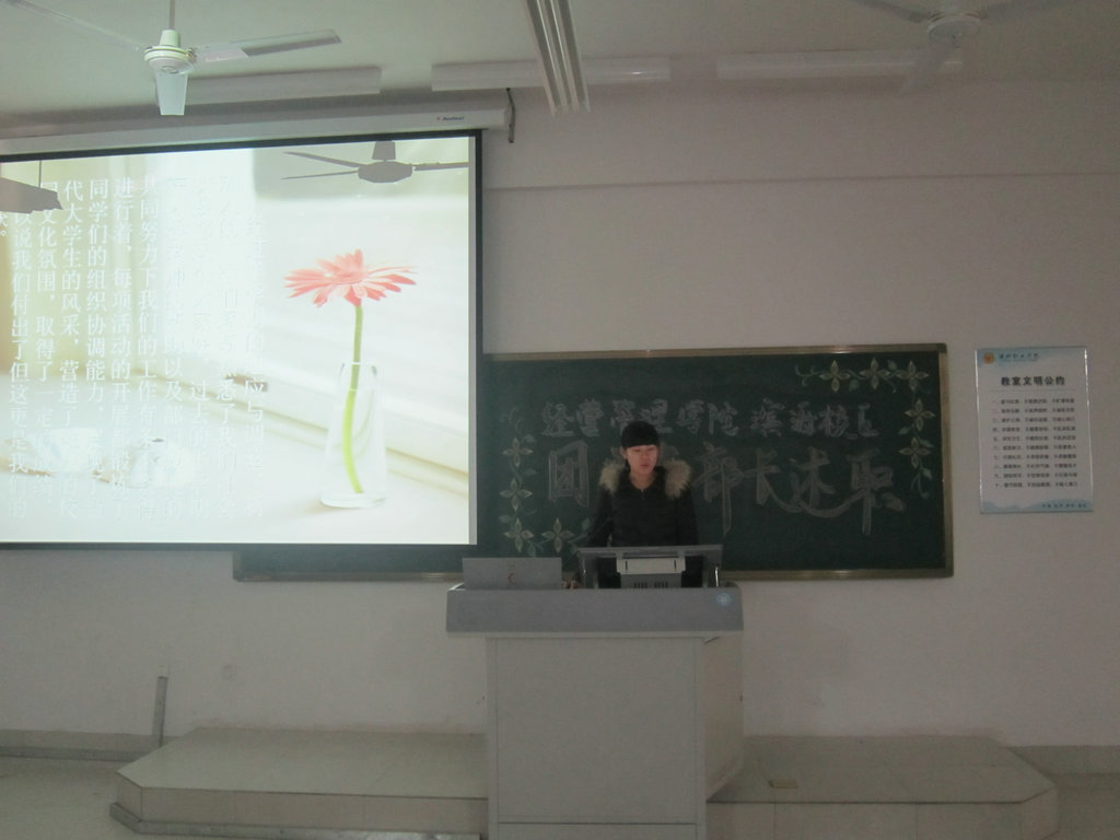 培训班上,20个部门的员工负责人以ppt的形式,紧紧围绕本学期的各项活动进行了回顾总结。主要内容是大家面对新校区新战场,如何充分发挥自己的特长,展现自己的智慧和创造力,圆满完成各项工作,并对今后的发展进行展望。出席培训班的辅导员老师对他们的成就一一点评,并针对出现的问题,提出三点努力方向: