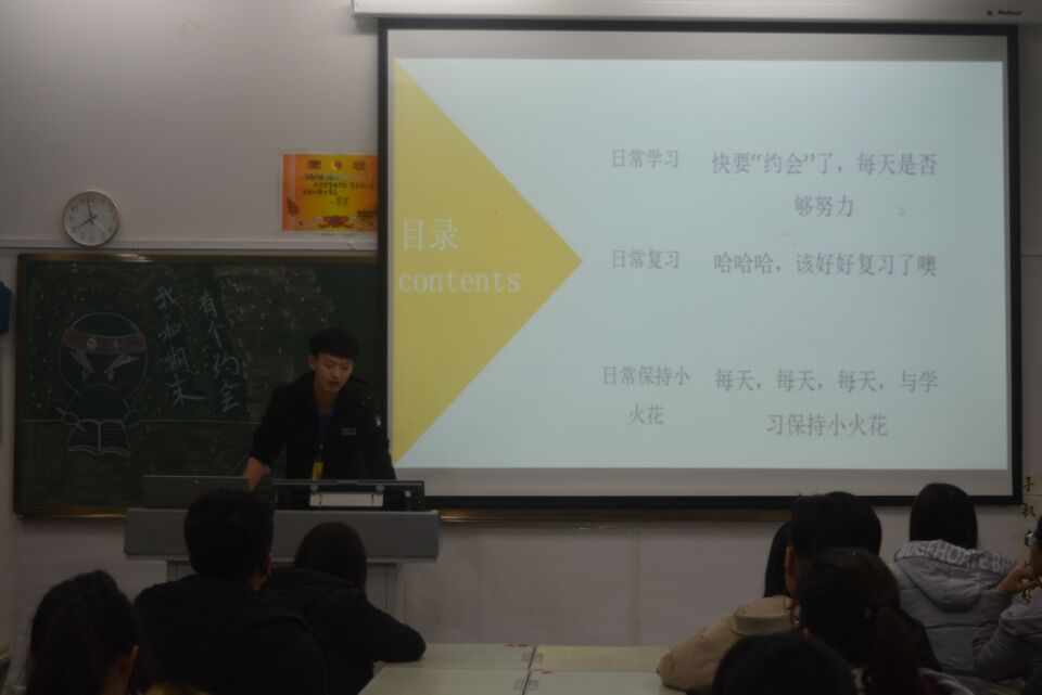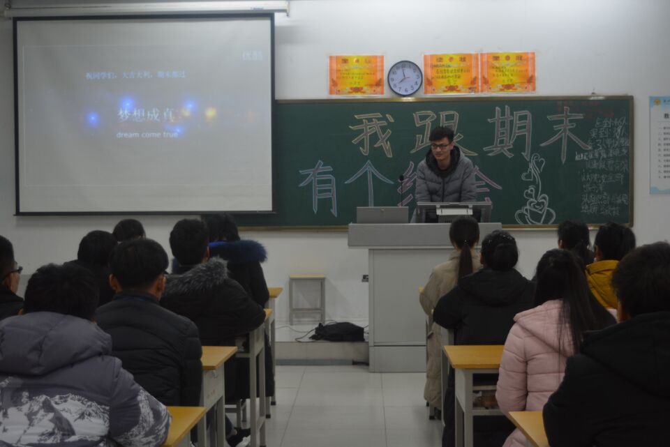 班会主要包括“年终班级总结”、“期末集中复习”、“诚信做人、诚信学习、诚信考试”三个模块,环节合理,环环相扣,层层深入。班会中,主要班级干部们对本期末工作进行了述职,交流分享工作经验,并对下学期工作初步规划。同时针对临近期末考试的实际情况,号召班级干部和学习成绩优异的同学带头成立帮扶小组,利用晚自习时间带动同学们在专业学习、考试复习中遇到的问题进行辅导,带动同学们以认真、诚信的态度迎接考试。
