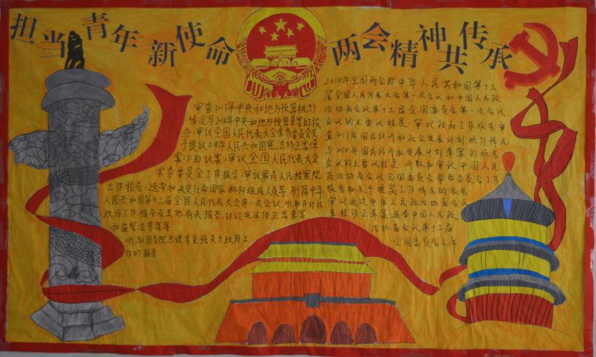通过此次墙报评比活动,营造学习“两会”精神的校园氛围,使同学们更多的了解国家大事,更好地做新时代“四有青年”。(鞠峰供稿)
