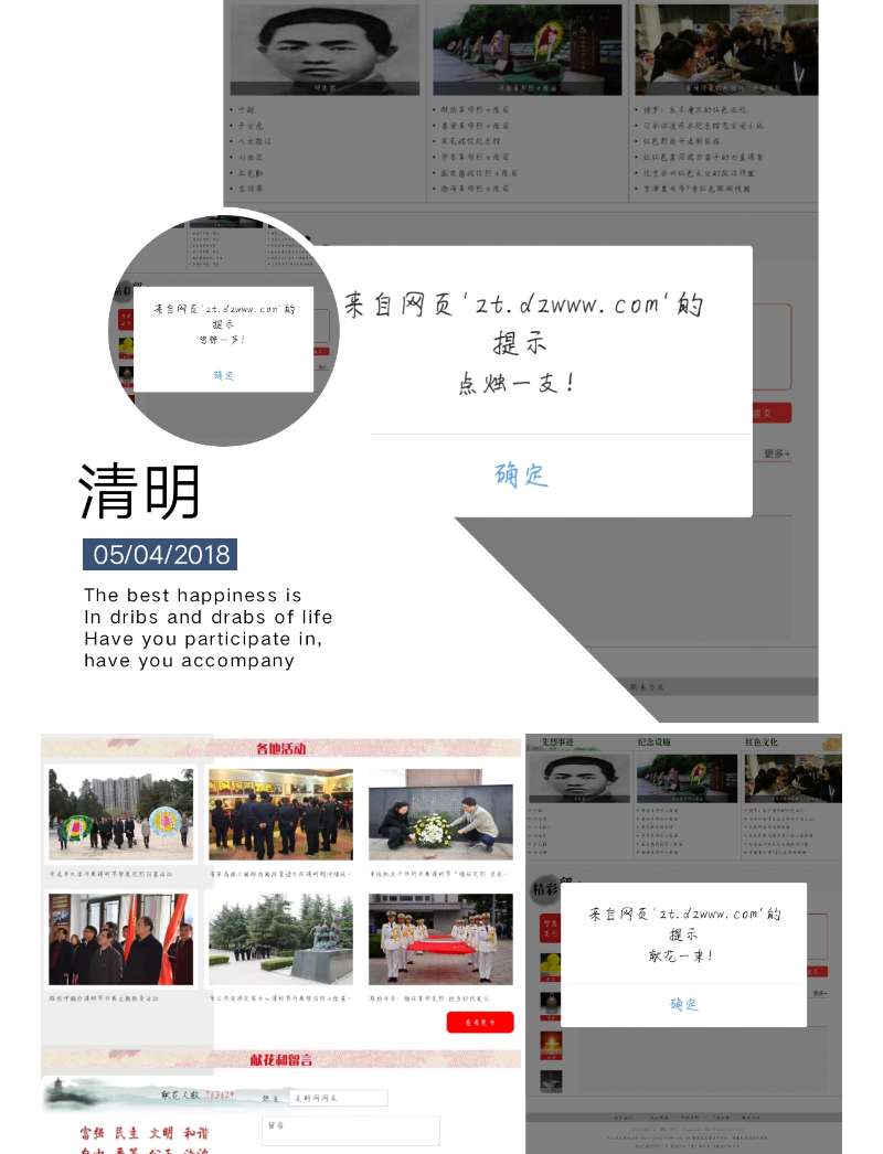 活动将网络与传统节日相结合,通过网上学习、浏览革命先烈的英雄事迹,倡导同学们通过网络向革命英烈敬献鲜花,网上“擦亮”人民英雄纪念碑,并在网络签名墙上郑重留言等形式,让同学们了解更多革命先烈们的英雄事迹,缅怀先烈,传承民族精神。