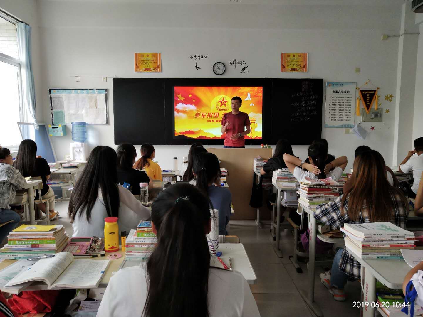 班会主要由各班主任向同学们讲解2019年老员工征兵工作的相关内容和国家征兵入伍流程、优先优待、选用培养、复学升学、就业服务、应征条件等优惠政策,并对报名、体检、政审及预征定兵时间安排情况、学费补偿、学籍保留及未来发展等同学们关心的热点问题进行了详细讲解,鼓励同学们做好职业规划,到军营中体验别样青春、书写精彩人生,用青春热血助力强军梦想。