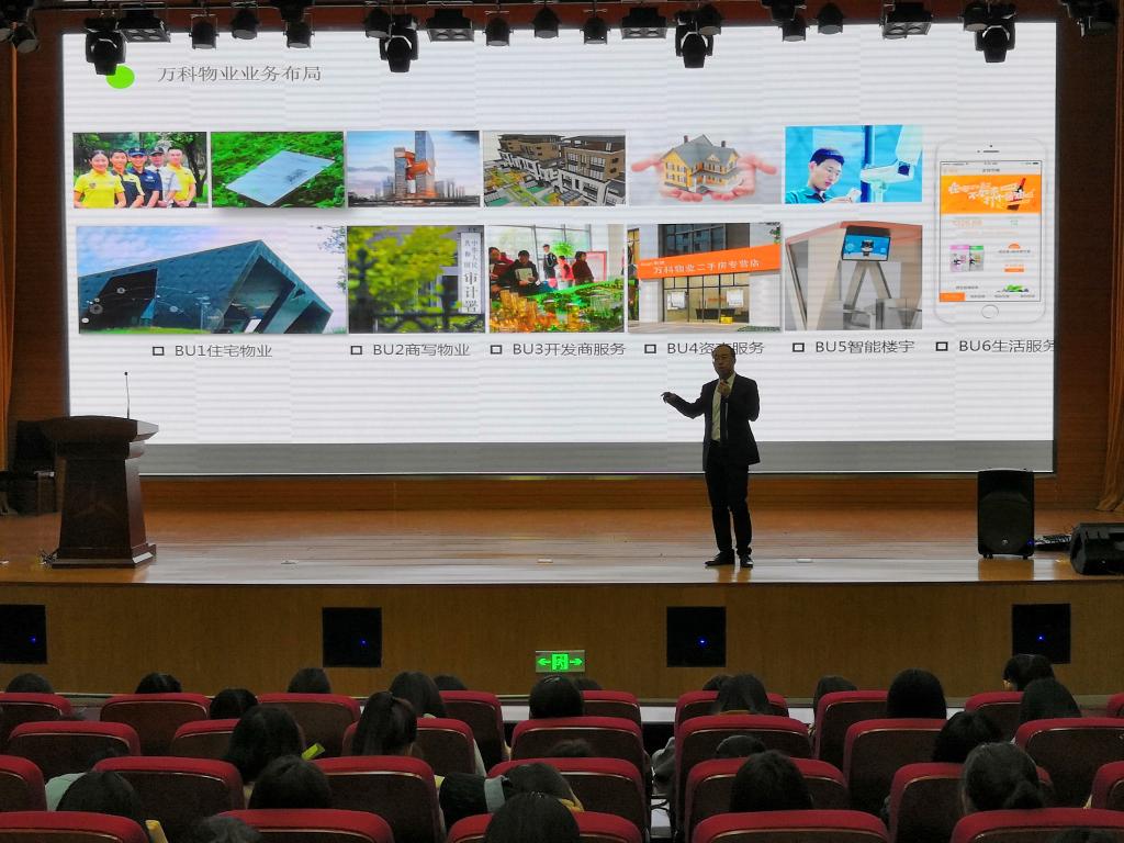 4月25日下午,bv伟德国际体育邀请万科物业发展股份有限公司人力资源部经理周鹏,在图书馆报告厅举办就业指导讲座,2017级全体同学参加。
