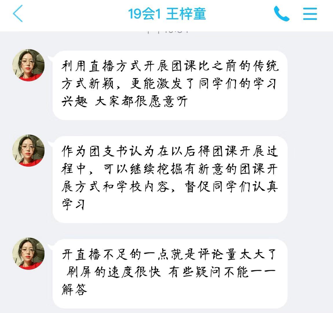 活动结束后,团员青年纷纷在团支部QQ群内表示,要相信科学、相信医生、做好自己,向无数奋战在一线的白衣天使致敬,在假期生活中的我们积极做好防控疫情措施,坚信在这次防控疫情的“人民战争”中,武汉必胜!中国必胜!(鞠峰供稿)