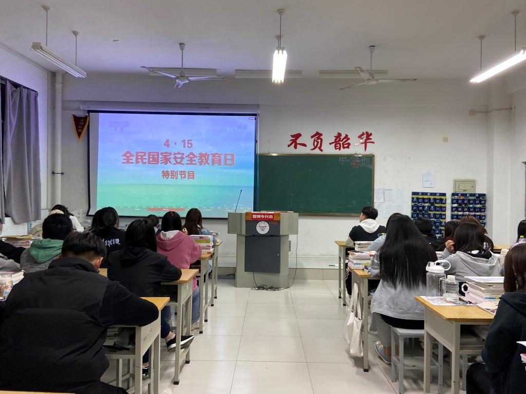 本次教育活动紧扣“践行总体国家安全观,统筹发展和安全,统筹传统安全和非传统安全,营造庆祝建党100周年良好氛围”主题,开展了主题团课、主题班会、集中收看专题宣传片三个系列活动。主题团课上,各班团支书利用PPT等载体,从不同视角、不同领域带领同学们学习“国家安全”的历史意义和时代内涵,并组织研讨交流,提升同学们的国家安全意识。“国家安全人人有责”主题班会上,各班级负责人组织员工学习《国家安全法》《反恐怖主义法》《反间谍法》以及习近平总书记关于总体国家安全观的重要论述,并列举出了各种危害国家安全的“红线”行为,帮助同学们了解总体国家安全观相关知识,掌握一定的国家安全知识和技能,自觉维护国家安全。组织师生集中收看了《护航之道——总体国家安全观纵横》专题宣传片。通过一系列活动,同学们纷纷表示,作为新时代老员工应提高认识,增强本领,为维护国家和平、安全、稳定、统一贡献青春力量。
