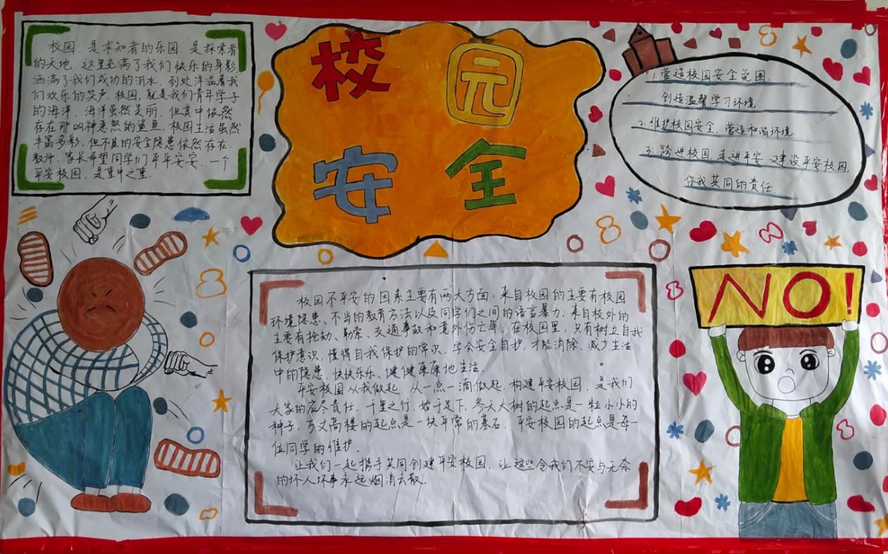 各班级围绕校园安全教育主题,认真搜集资料,同学们利用美术字、图画等艺术形式对墙报进行了精心的设计,主题鲜明,内容充实,图文并茂,全方位、多角度的宣传了防震减灾、交通安全、食品安全、生活安全、防溺水等知识,介绍了在危害、灾害等发生时的逃生方法、技巧、措施等,起到了很好的校园安全教育作用。公司组织评委老师进行客观、公平、公正的评比,最后评选出一等奖1名,二等奖2名,三等奖3名。