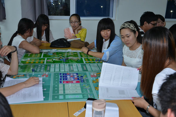 首先进行的是ERP企业经营管理沙盘推演培训。该培训以仿真的企业经营管理环境和运营操作流程为主线,通过员工模拟实践使员工置身于一个仿真企业的经营环境中,运用独特、直观的教具使员工亲自参与企业经营管理,让参与者理解市场导向基础上的营销管理与财务管理,认识各种决策与投资策略的市场效果,体验各个管理岗位的感受,理解公司任何一个部门的行为对公司全局的影响,了解资金在公司内如何流动,以及资金分配的重要原则,学习如何控制成本,培养统观全局的能力,学习提高自我的管理能力。