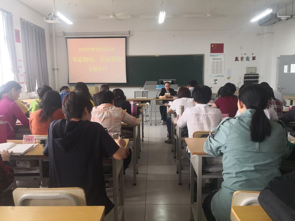 9月19日下午,bv伟德国际体育在惠泽1-A312开展“不忘初心、牢记使命”主题教育,全体党员参加。